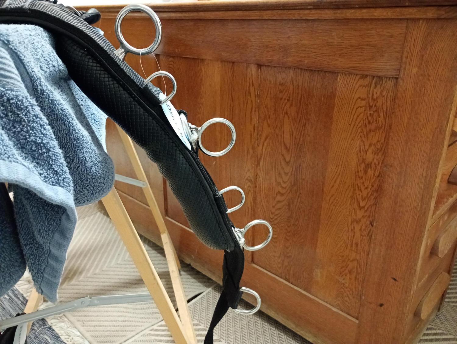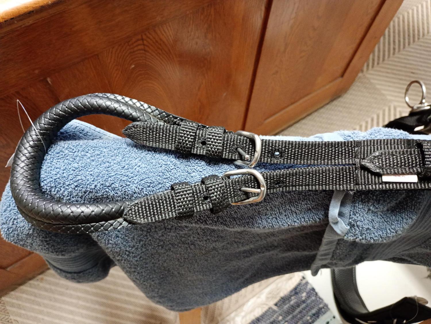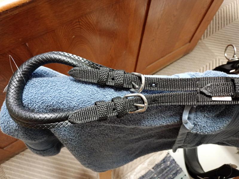 Tömkörningsdäckel med rejäl och stoppad däckel med stål i, 6 ringar på varje sida ger bra justeringsmöjligheter. 3 st av ringarna på varje sida är stående ringar. Ryggstycke och svanskappa ingår. Ring även på bukgjorden. Nu ännu bättre med ullstoppad däckel!